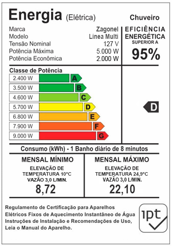 Ducha Elétrica Multitemp 3T Linea (Branco) - 127 Volts x 5000 Watts - Zagonel