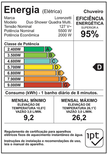 Ducha Elétrica Multitemp DuoShower Quadra (Branco) - 127 Volts x 5500 Watts - Lorenzetti