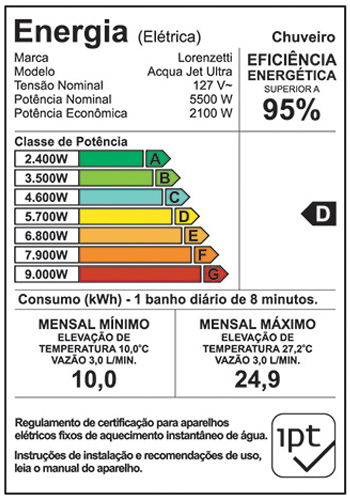 Ducha Eletrônica AcquaJet Ultra (Branco c/Cromado) - 127 Volts x 5500 Watts - Lorenzetti