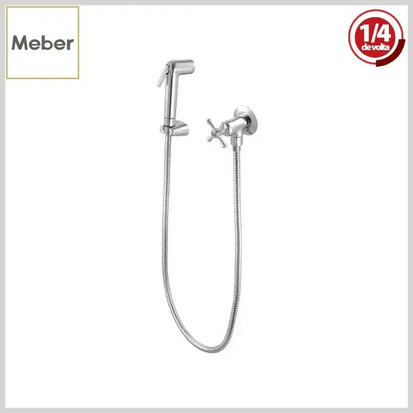 Ducha Higiênica +Gatilho 1850 C-24 Tetra 1/4Volta Parede Cromado - Gatilho Abs, Volante Metal - Meber