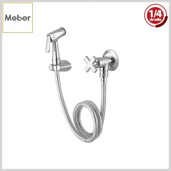 Ducha Higiênica +Gatilho 1851 C-22 Nya 1/4Volta Parede Cromado - Gatilho Metal, Volante Metal - Meber