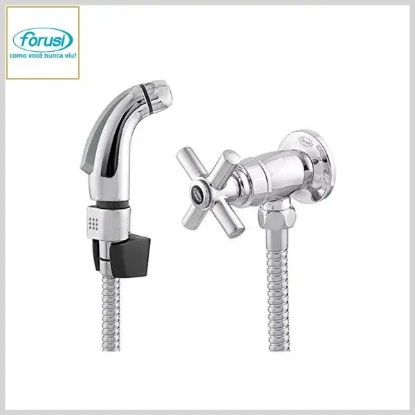 Ducha Higiênica +Gatilho Luxo 1856 C-37 Mvs Parede Cromado - Gatilho Metal, Volante Metal - Forusi
