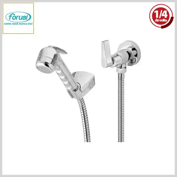 Ducha Higiênica +Gatilho Luxo 1856 Clock 1/4Volta Parede Cromado - Gatilho Metal, Volante Metal - Forusi