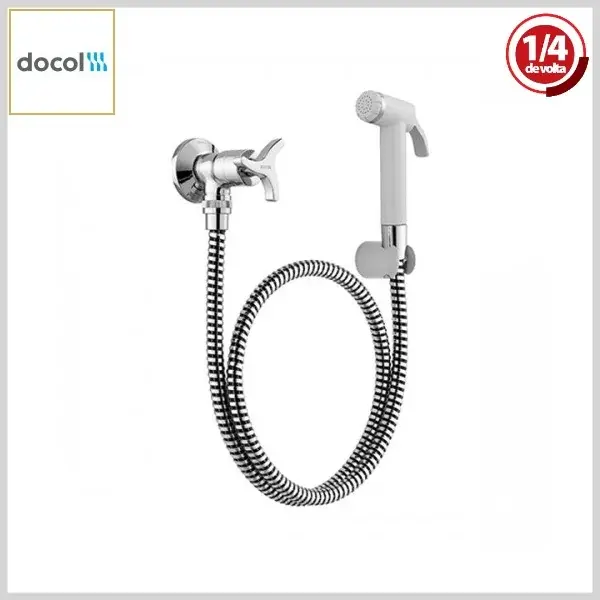Ducha Higiênica Trio c/Gatilho Branco +Registro Cromado - 1/2 pol - ¼ Volta - Docol