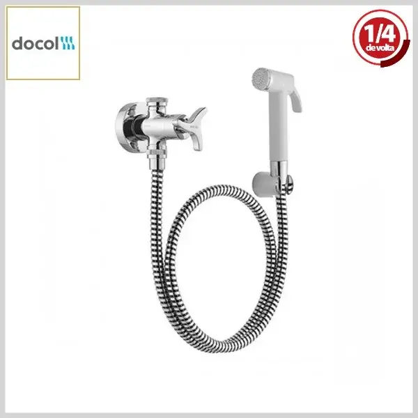 Ducha Higiênica Trio c/Gatilho Branco +Registro/Derivação Cromado - 1/2 pol - ¼ Volta - Docol