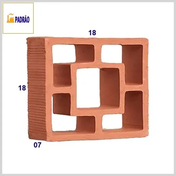 Elemento Vazado Cerâmico (Cobogó) Quadrado Reto Med. 18 x 18 x 7 cm - Venda Avulsa (x1un) - Padrão