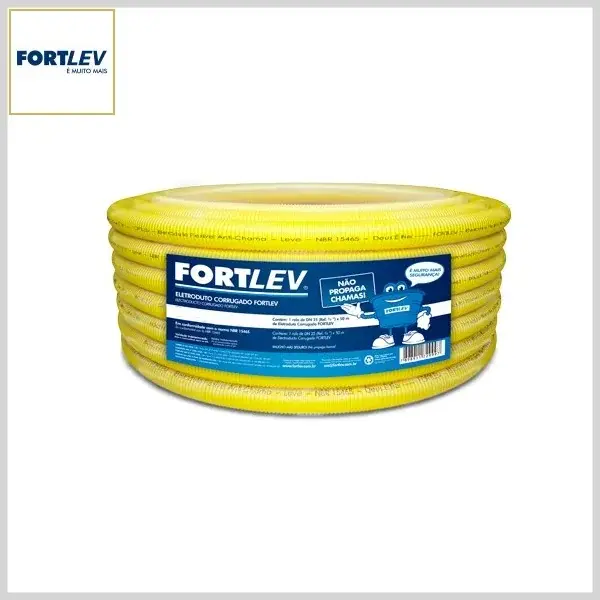 Eletroduto Flexível Corrugado PVC Antichama Amarelo - 20 mm - Rolo 50m - Fortlev