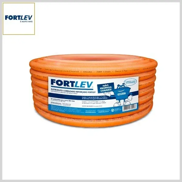 Eletroduto Flexível Corrugado PVC Antichama Laranja Reforçado - 20 mm - Rolo 50m - Fortlev