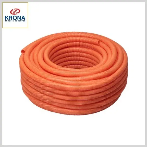 Eletroduto Flexível Corrugado PVC Reforçado Laranja - 20 mm - Rolo 50m - Krona