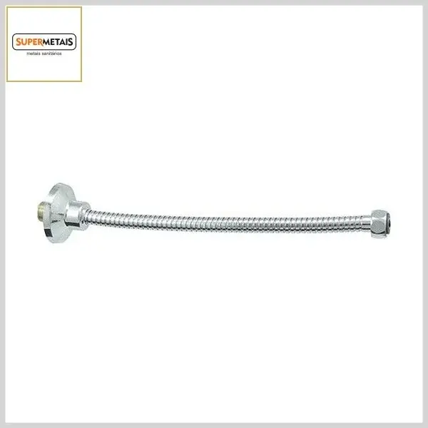 Produto com corpo em metal flexível cromado DN15 (1/2"), sendo indicado para uso como ligação e alimentação de água fria ou quente em torneiras, misturadores e dispositivos hidráulicos instalados em peças sanitárias.