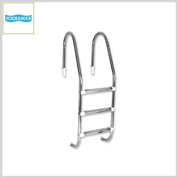Escada Tradicional p/Piscina Corrimão Aço Inox 3 Degraus - Corrimão: 1.½" / Degraus: ABS+Latão - Sodramar