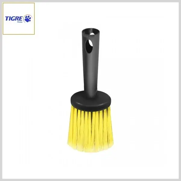 TIGRE ESCOVA (BROXA) 1199 é um produto indicado para pinturas com tintas em pó ou aplicação de impermeabilizantes. Com formato redondo, possui cabo e base em plástico preto, com filamento sintético florado de cor preta no núcleo e amarelo na parte exterior.