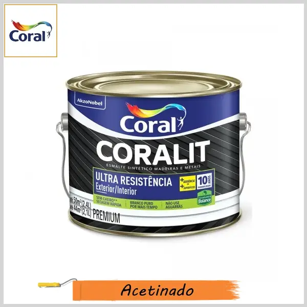 CORALIT ULTRA RESISTÊNCIA BALANCE é um esmalte sintético à base de água, de qualidade premium, que possui fórmula exclusiva, possibilitando excelente aderência e facilitando a repintura de portas e janelas de madeira ou metal. Indicado para uso interno ou externo, não descasca e não amarela, mantendo o branco puro por mais tempo. Disponível nos acabamentos acetinado e brilhante, não tem cheiro e possui secagem rápida graças à sua tecnologia Balance. Diluível com água, possui ainda durabilidade de 10 anos e dispensa o uso de aguarrás para a limpeza das ferramentas.