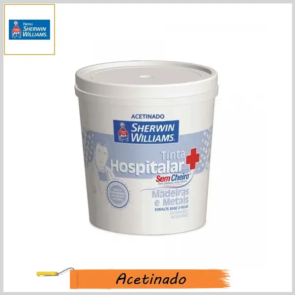 Esmalte Base Água Hospitalar Madeira&Metais Acetinado, Pote 900ml - Branco - Sherwin Williams