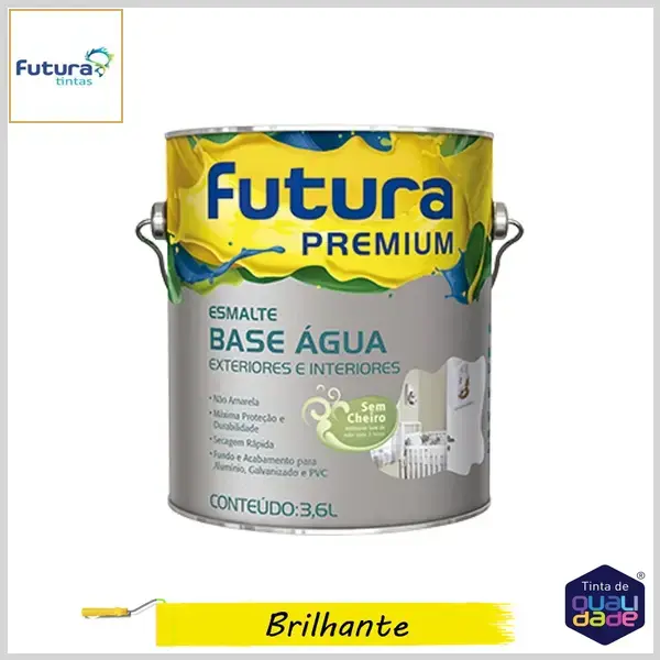 O Esmalte Futura Base Água Premium é um produto de secagem rápida, fácil aplicação e com resistência prolongada às intempéries, sendo ideal para pinturas e repinturas internas e externas de metais, madeira, galvanizados, alumínio e pvc. De baixo odor e com acabamento primoroso que não amarela, o produto está disponível em diversas cores prontas e no Sistema Magia das Cores com mais de 2000 tonalidades, nos acabamentos acetinado e brilhante.
