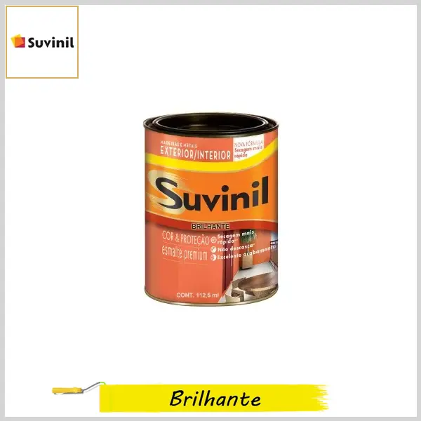 Esmalte Sintético Suvinil Cor & Proteção, é um produto de fácil aplicação com características de alta resistência às intempéries com acabamentos acetinado, brilhante ou fosco. Possui ótima secagem, excelente acabamento e sua fórmula siliconada permite uma menor aderência de sujeira facilitando a limpeza. A segunda demão pode ser aplicada após 45 minutos, mesmo que a primeira ainda não esteja seca.