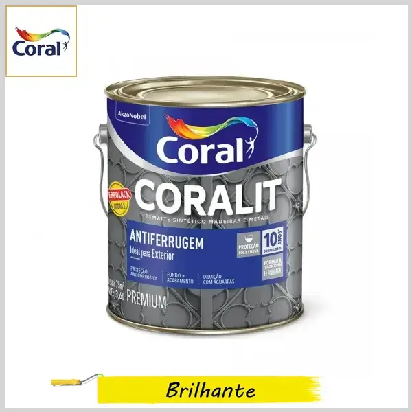 CORALIT ANTIFERRUGEM é um esmalte sintético à base de solvente, de qualidade Premium, que oferece excelente proteção anticorrosiva e contra os efeitos do sol e da chuva, graças à sua tecnologia que incorpora fundo e acabamento em um só produto. O trabalho de pintura torna-se mais prático, pois dispensa a aplicação prévia de fundos ou primers anticorrosivos. Apresenta ótima dureza, resistência ao atrito e às intempéries e é fácil de aplicar. Possui ainda durabilidade de 10 anos, se aplicado de acordo com as condições e instruções existentes na embalagem.