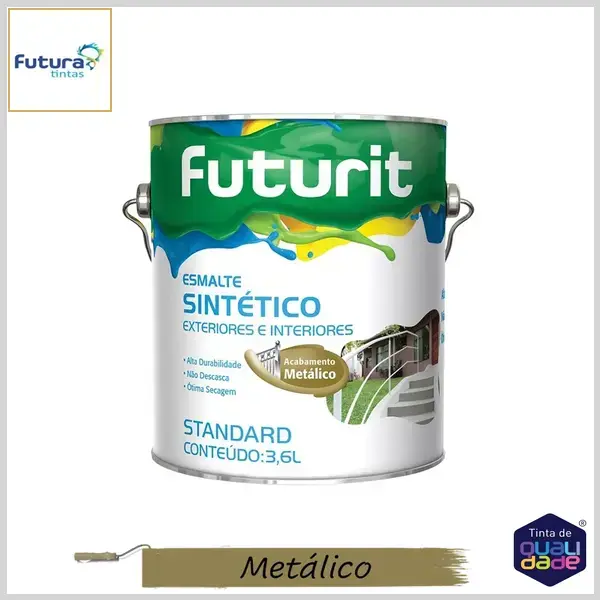 O Esmalte Sintético Futurit Standard é um produto de secagem rápida, fácil aplicação e com resistência fantástica às intempéries, sendo ideal para pinturas e repinturas internas e externas de metais, madeira, galvanizados, alumínio e pvc. O produto está disponível em diversas cores prontas e no Sistema Magia das Cores com mais de 2000 tonalidades, nos acabamentos brilhante, fosco, acetinado e metálico.