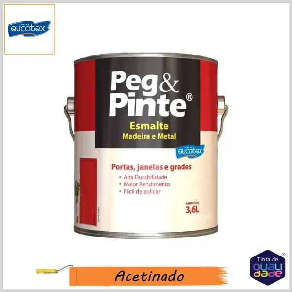 Eucatex Peg & Pinte Esmalte é um produto de custo econômico e boa qualidade, de fácil aplicação. Oferece boa resistência às intempéries e possui bom alastramento.