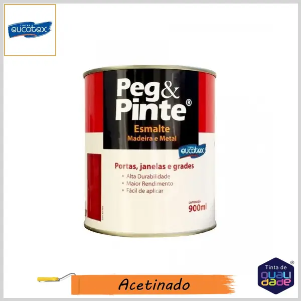 Eucatex Peg & Pinte Esmalte é um produto de custo econômico e boa qualidade, de fácil aplicação. Oferece boa resistência às intempéries e possui bom alastramento.
