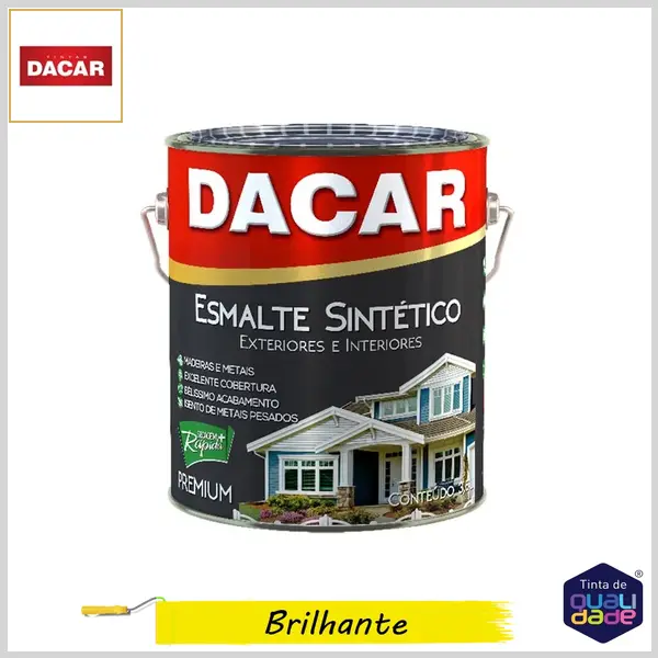 Dacar Esmalte Sintético Premium possui formulação de alta qualidade contendo silicone, o que garante maior proteção e facilidade de limpeza, reduzindo a aderência de sujeira. Fácil de aplicar, proporciona superior acabamento, super resistência ao intemperismo e possui excelente poder de cobertura e rendimento, além de secagem rápida. É oferecido nos acabamentos acetinado, brilhante e fosco, sendo indicado para pintura ou repintura de superfícies externas e internas de metais ferrosos, galvanizados, madeira, cerâmica não vitrificada e alvenaria.