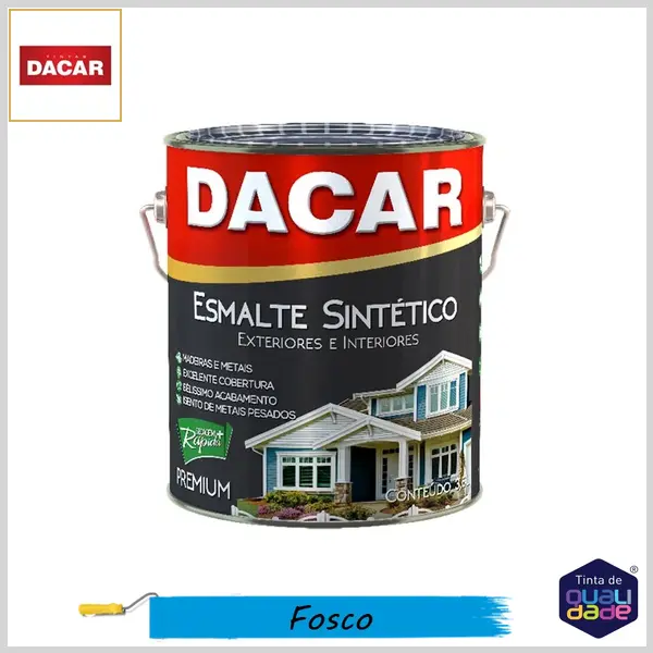 Dacar Esmalte Sintético Premium possui formulação de alta qualidade contendo silicone, o que garante maior proteção e facilidade de limpeza, reduzindo a aderência de sujeira. Fácil de aplicar, proporciona superior acabamento, super resistência ao intemperismo e possui excelente poder de cobertura e rendimento, além de secagem rápida. É oferecido nos acabamentos acetinado, brilhante e fosco, sendo indicado para pintura ou repintura de superfícies externas e internas de metais ferrosos, galvanizados, madeira, cerâmica não vitrificada e alvenaria.