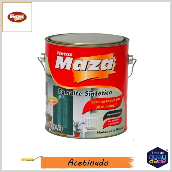 Esmalte Sintético Maza é um produto de alta qualidade e durabilidade, possuindo um excelente poder de cobertura e rendimento. Sua formulação permite a secagem em até 30 minutos, sendo indicado para superfícies externas e internas de metais, galvanizados, madeira e alumínio. De qualidade standard, o produto está disponível nos acabamentos acetinado, brilhante e fosco.