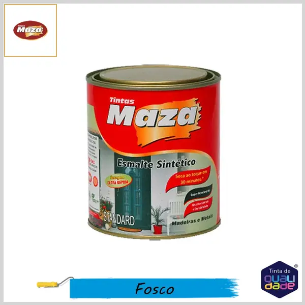 Esmalte Sintético Maza é um produto de alta qualidade e durabilidade, possuindo um excelente poder de cobertura e rendimento. Sua formulação permite a secagem em até 30 minutos, sendo indicado para superfícies externas e internas de metais, galvanizados, madeira e alumínio. De qualidade standard, o produto está disponível nos acabamentos acetinado, brilhante e fosco.