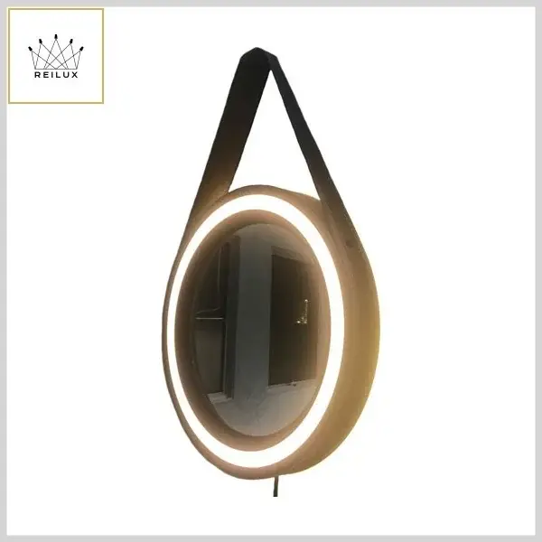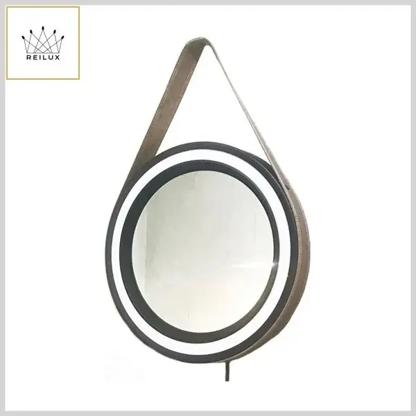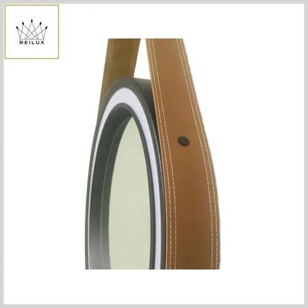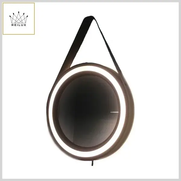 Espelho Led Decorativo Adnet Alumínio c/Alça Couro Ecológico - Preto e Marrom - Reilux