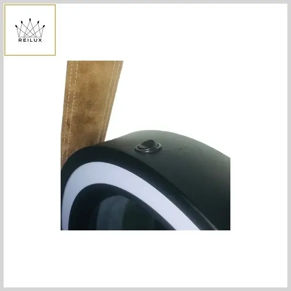 Conjunto composto de espelho decorativo redondo em alumínio repuxado, com pintura eletrostática na cor preta e alça de fixação confeccionada em couro ecológico na cor marrom. Contém iluminação em Led coberta por difusor acrílico branco fosco, sendo indicado para uso em paredes de salas de estar ou jantar, halls de banheiros e lavabos, recepções de restaurantes e lojas comerciais e em ambientes onde se desejem uma iluminação elegante e diferenciada.