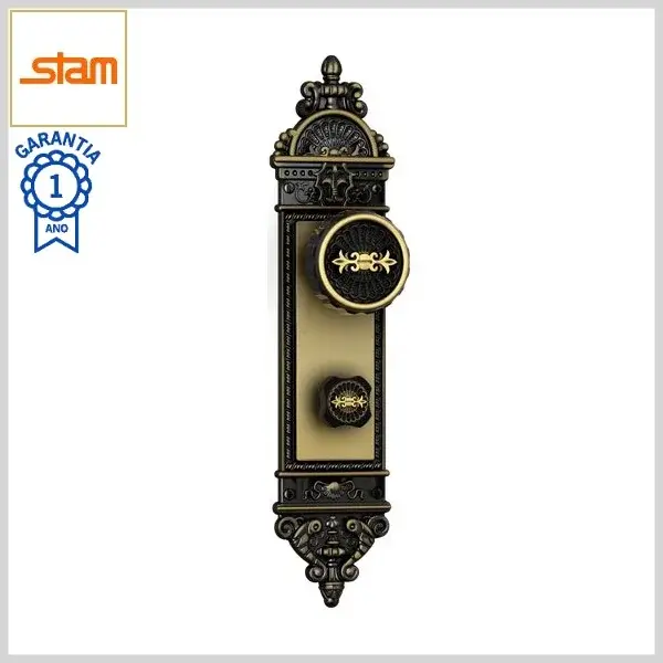 Fechadura Banheiro Colonial 1520/06 Broca55mm Tranqueta c/Maçaneta c/Espelho Zamac - Colonial e-Coat - Stam