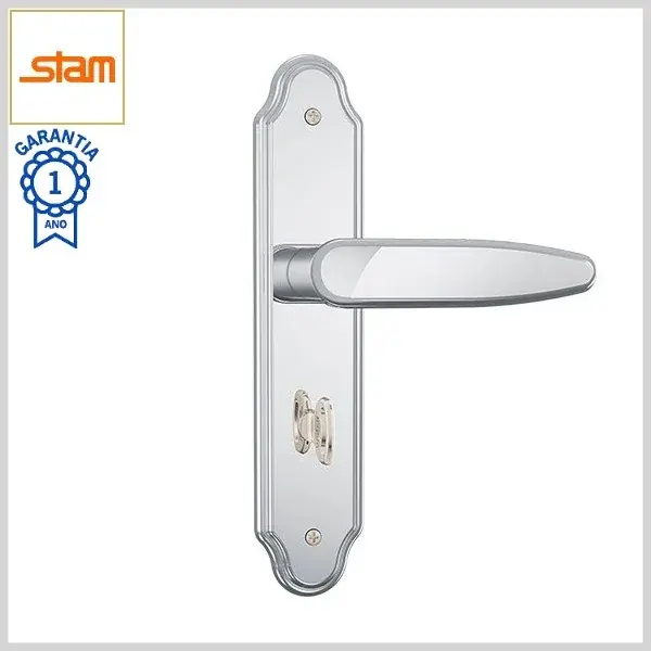 Fechadura Banheiro Standard 823/19 Broca40mm Tranqueta c/Maçaneta c/Espelho Inox - Cromado - Stam