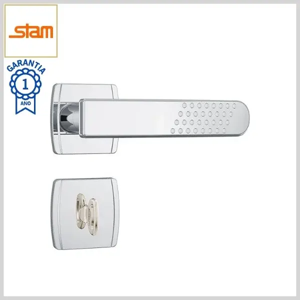 Fechadura Banheiro Standard 823/21 Broca40mm Tranqueta c/Maçaneta c/Roseta Inox Quadrada - Cromado - Stam