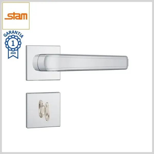 Fechadura Banheiro Standard 823/23 Broca40mm Tranqueta c/Maçaneta c/Roseta Inox Quadrada1 - Cromado - Stam