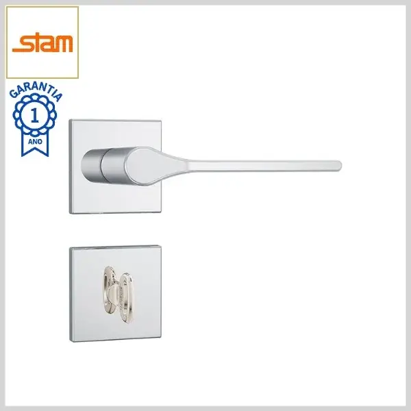 Fechadura Banheiro Standard 823/25 Broca40mm Tranqueta c/Maçaneta c/Roseta Inox Quadrada1 - Cromado - Stam