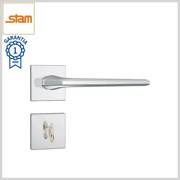 Fechadura Banheiro Standard 823/27 Broca40mm Tranqueta c/Maçaneta c/Roseta Inox Quadrada1 - Cromado - Stam