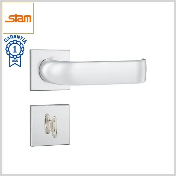 Fechadura Banheiro Standard 823/39 Broca40mm Tranqueta c/Maçaneta c/Roseta Inox Quadrada1 - Cromado - Stam