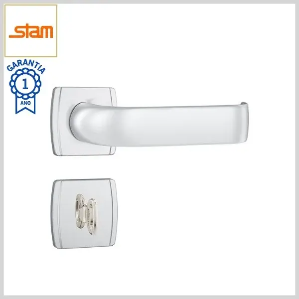 Fechadura Banheiro Standard 823/39 Broca40mm Tranqueta c/Maçaneta c/Roseta Inox Quadrada - Cromado - Stam