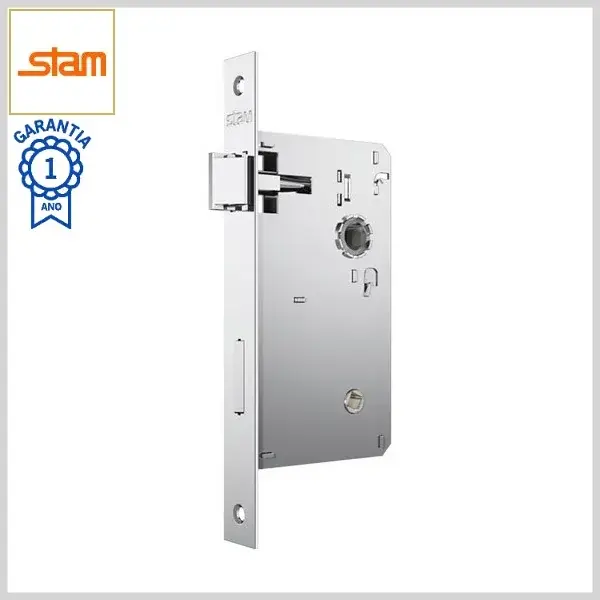 Fechadura Banheiro Standard 1620/41 Broca55mm Tranqueta c/Maçaneta c/Espelho Inox - Cromado - Stam