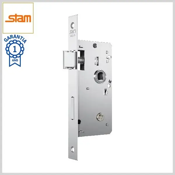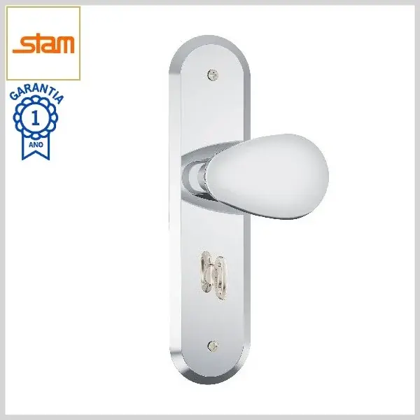 Fechadura Banheiro Standard 1820/10 Broca40mm Tranqueta c/Maçaneta c/Espelho Inox - Cromado - Stam