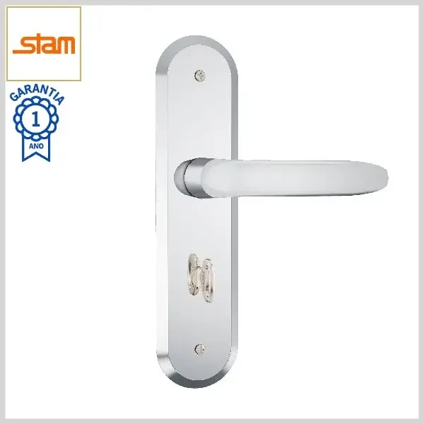 Fechadura Banheiro Standard 1820/11 Broca40mm Tranqueta c/Maçaneta c/Espelho Inox - Cromado - Stam