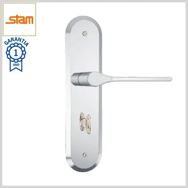 Fechadura Banheiro Standard 1820/25 Broca40mm Tranqueta c/Maçaneta c/Espelho Inox - Cromado - Stam