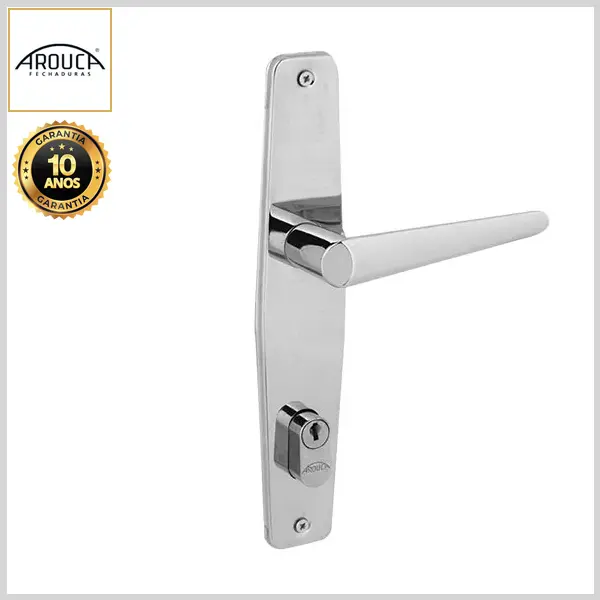 Fechadura Externa Abitare Strada 102526/40 Broca40mm Chave Simples c/Maçaneta c/Espelho Inox - Cromado - Arouca