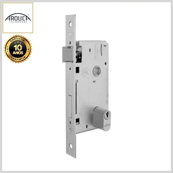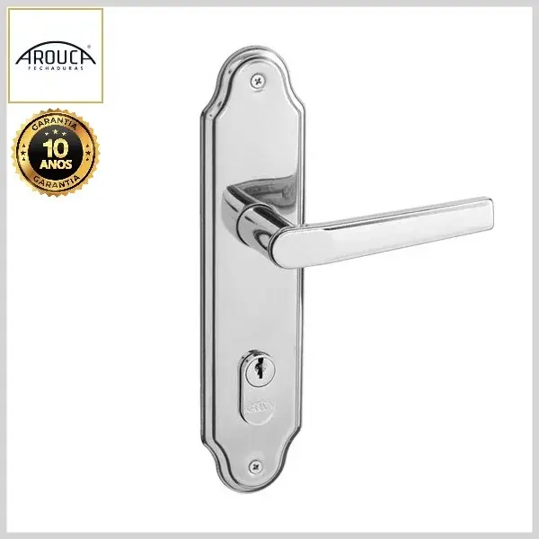 Fechadura Externa Abitare Uno 2010/40 Broca40mm Chave Simples c/Maçaneta c/Espelho Inox - Cromado - Arouca