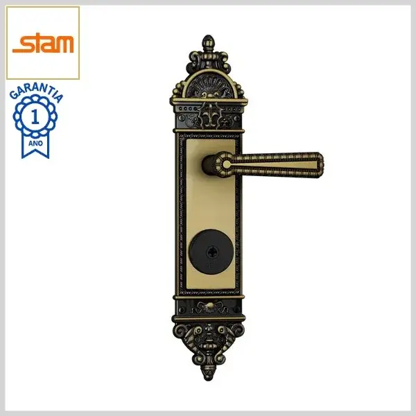 Fechadura Externa Colonial 1500/03 Broca55mm Chave Tetra c/Maçaneta c/Espelho Zamac - Colonial e-Coat - Stam