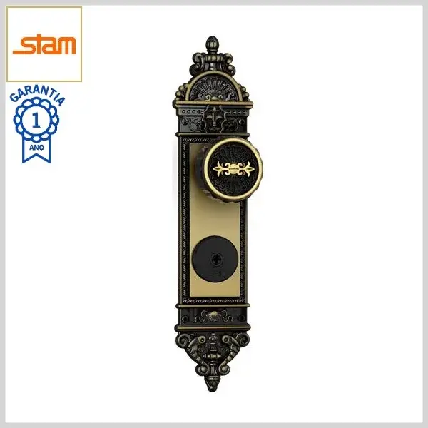 Fechadura Externa Colonial 1500/06 Broca55mm Chave Tetra c/Maçaneta c/Espelho Zamac - Colonial e-Coat - Stam
