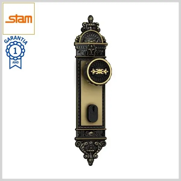 > Fechadura Externa Colonial 1501/06 Broca55mm Chave Simples c/Maçaneta c/Espelho Zamac