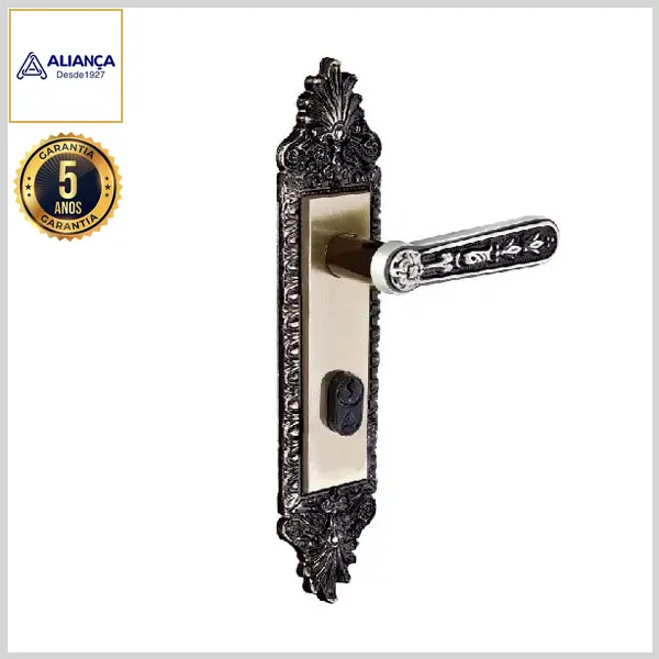 Fechadura Externa Colonial 3600/100 Broca55mm Chave Simples c/Maçaneta c/Espelho Zamac - Latão Oxidado - Aliança