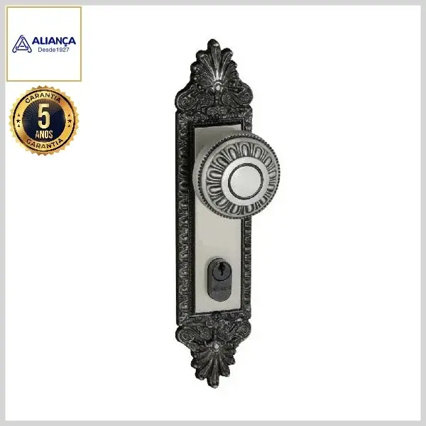 > Fechadura Externa Colonial 3600/104 Broca55mm Chave Simples c/Maçaneta c/Espelho Zamac