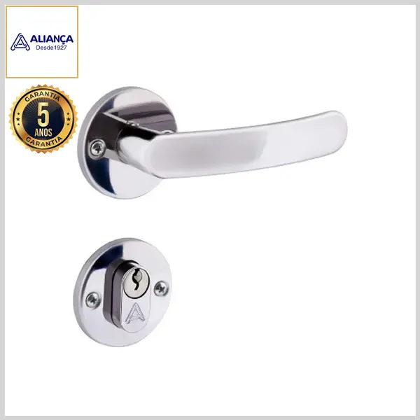 Fechadura Externa Premium 2600/11 Broca40mm Chave Simples c/Maçaneta c/Roseta Inox Redonda - Inox Polido - Aliança